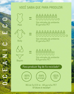 Com o objetivo de mudar esse cenário e contribuir mais ao nosso meio ambiente, os nossos produtos são biodegradáveis e sustentáveis. Isso quer dizer que nossos tecidos além de serem fabricados de uma forma mais sustentável com menor consumo de água, menor consumo de energia, menor emissões de CO2 , eles são reciclados de garrafas PET100% pós-consumo, ele se decompõe em até 3 anos se descartado em aterros sanitários contribuindo para menor acumulo no Planeta.